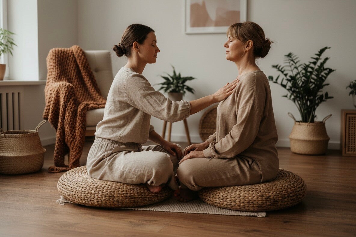 En travaillant avec les massages traditionnels, la respiration, le son et la présence attentive, nous offrons au corps un espace de sécurité,